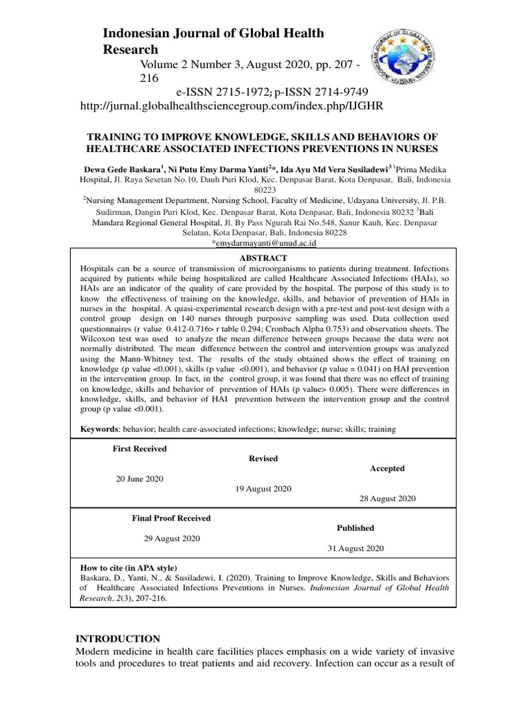 this studyare knowledge of HAIs, skills, and behavior to prevent HAIs. Meanwhile, the