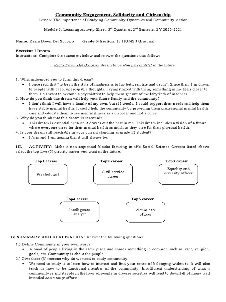 I, Kezia Dawn Del Socorro, dream to be a/an psychiatrist in the future.