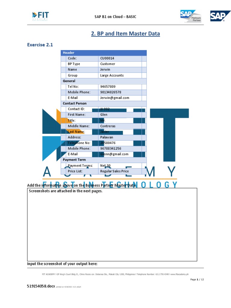 FIT ACADEMY l GF King’s Court Bldg II., Chino Roces cor. Delarosa Sts., Makati City 1200, Philippines l Telephone Number: 63.2.759.4348 l www.fitacademy.ph