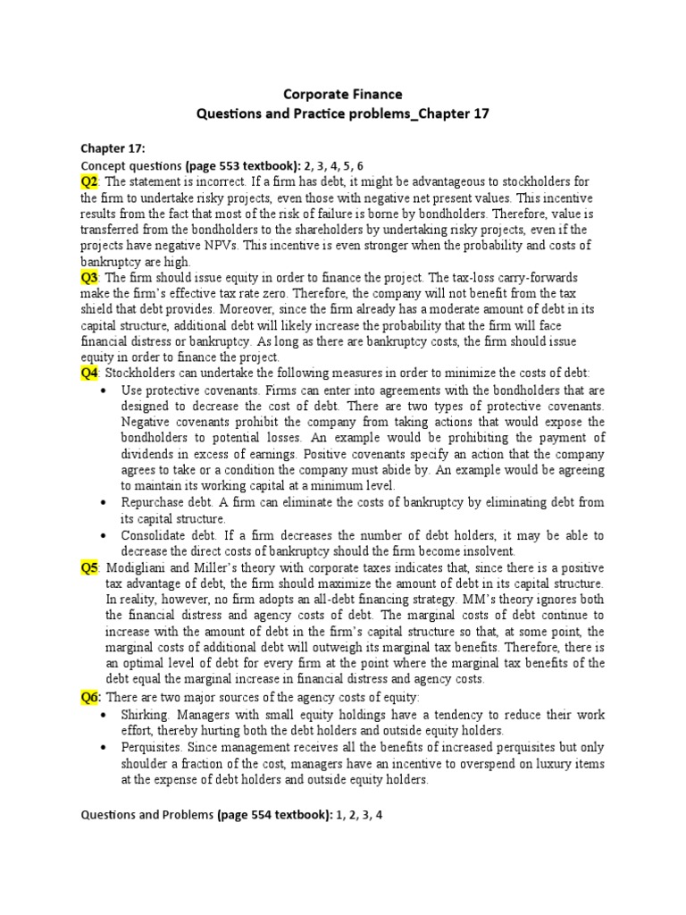 Q4: Stockholders can undertake the following measures in order to minimize the costs of debt: