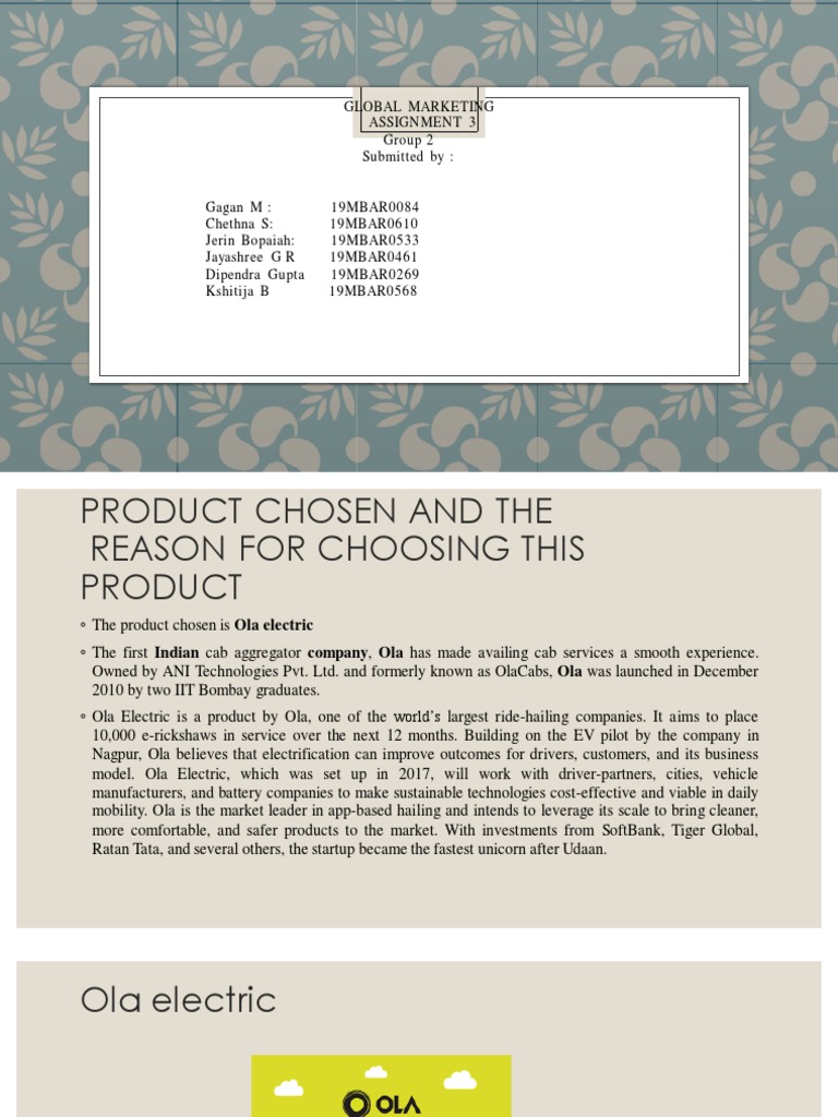 ◦ Ola Electric is a product by Ola, one of the world’s largest ride-hailing companies. It aims to place