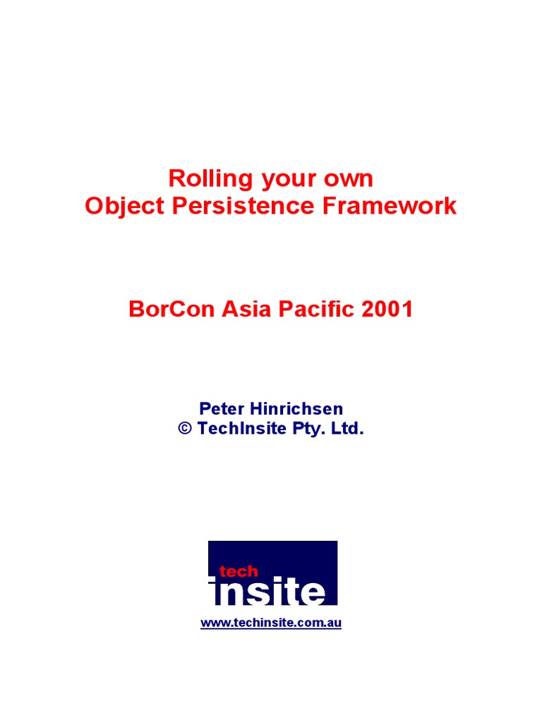 Rolling your own object persistence framework - © TechInsite Pty. Ltd. www.techinsite.com.au 1.168