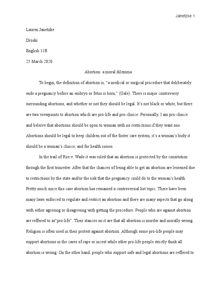 In conclusion, abortion should be legal and there should be no restrictions on it. There are