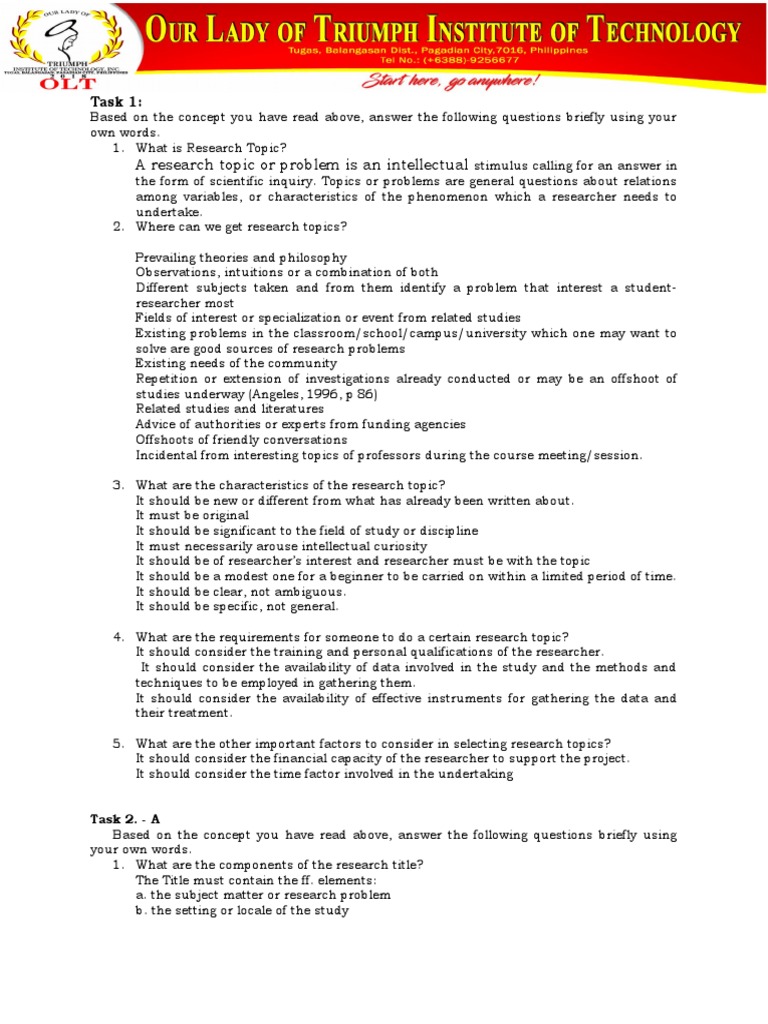 A research topic or problem is an intellectual stimulus calling for an answer in