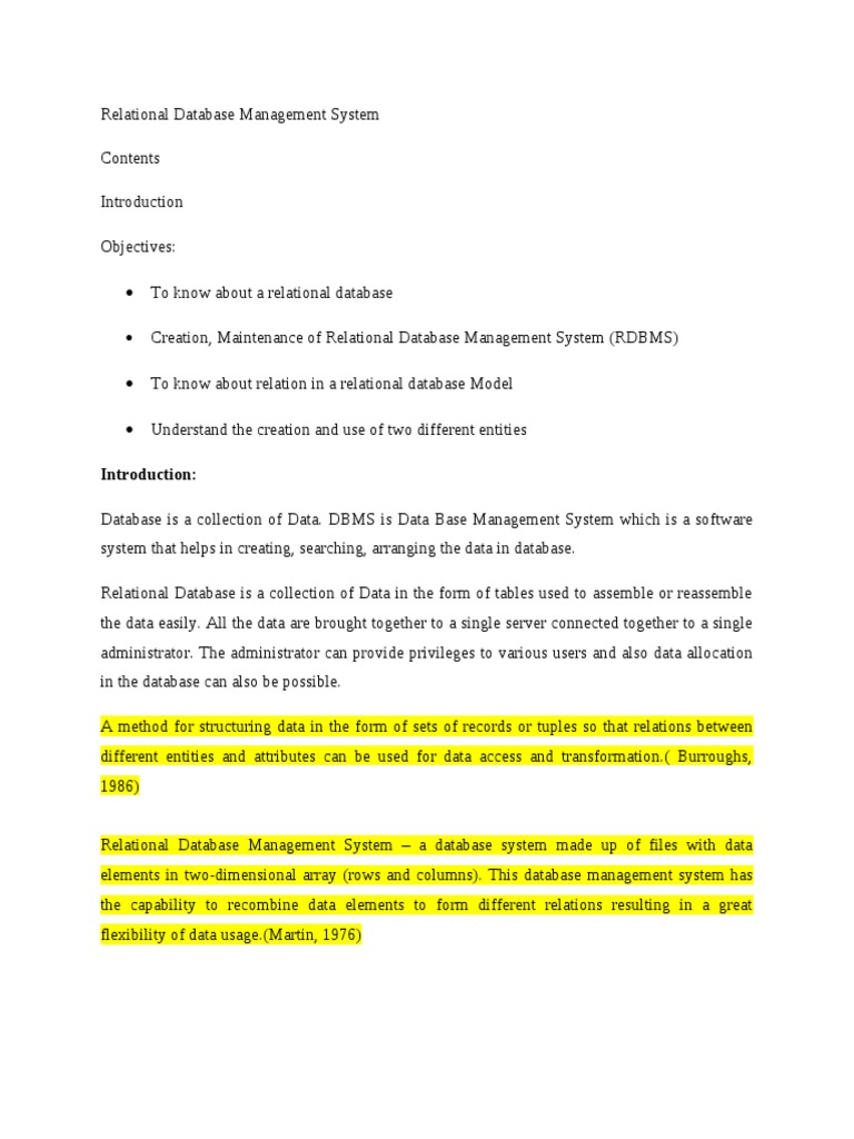 Relational Database is a collection of Data in the form of tables used to assemble or reassemble