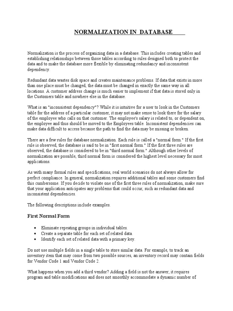 perfect compliance. In general, normalization requires additional tables and some customers find