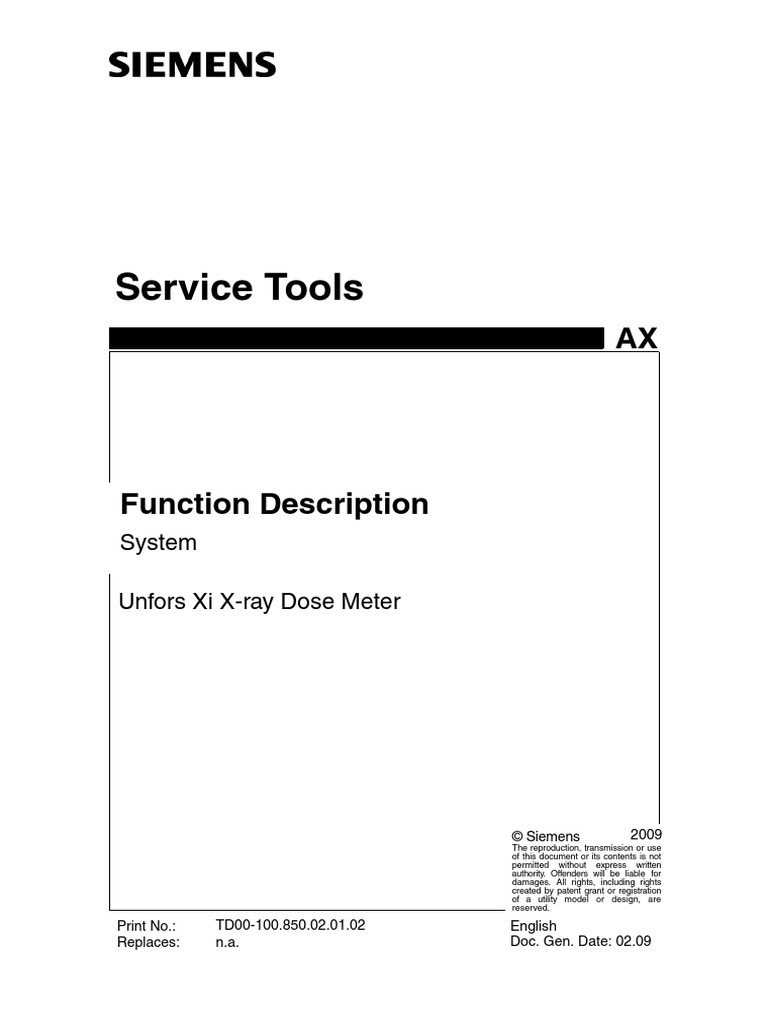 Service Tools TD00-100.850.02.01.02 Page 2 of 14 Siemens