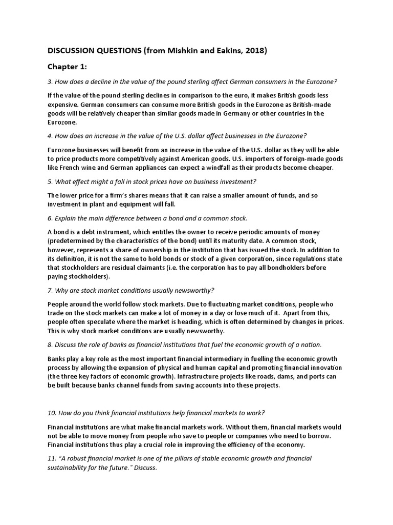 DISCUSSION QUESTIONS (from Ch. 3 in Mishkin and Eakins, 2018)