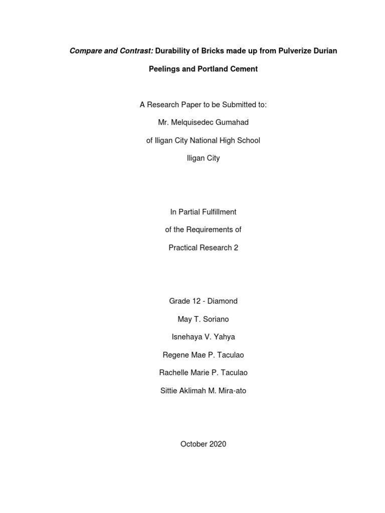 Compare and Contrast: Durability of Bricks made up from Pulverize Durian