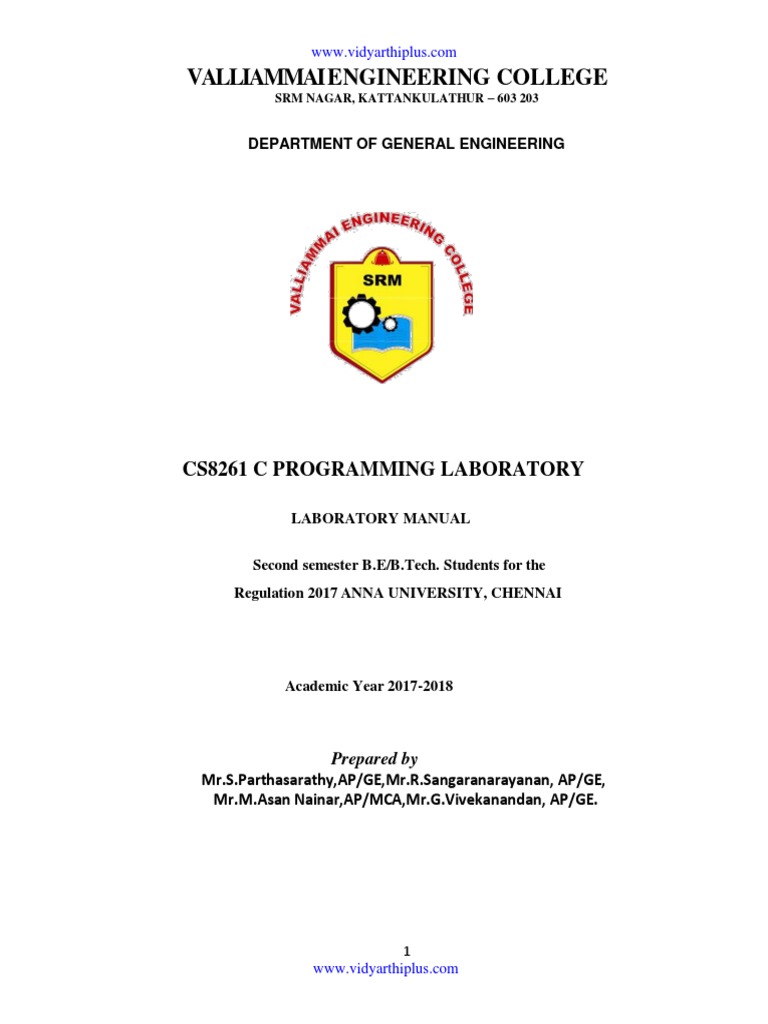 Syllabus: CS8261 C PROGRAMMING LABORATORY LT PC