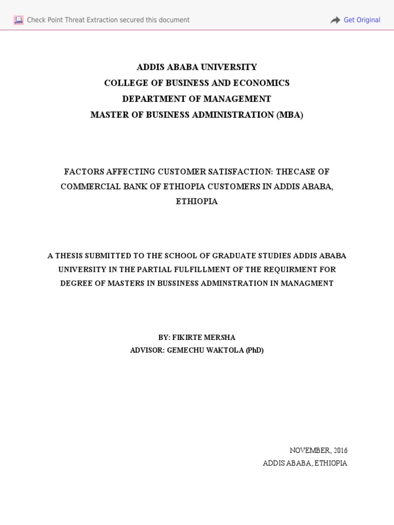 አበባ ባለ ቅርንጫፎች ላይ በዯንበኛው የአገልግሎት እርካታ ላይተፅዕኖ የሚያሳድሩ ሁኔታዎችን በሚል ርዕስ ጥናቴን