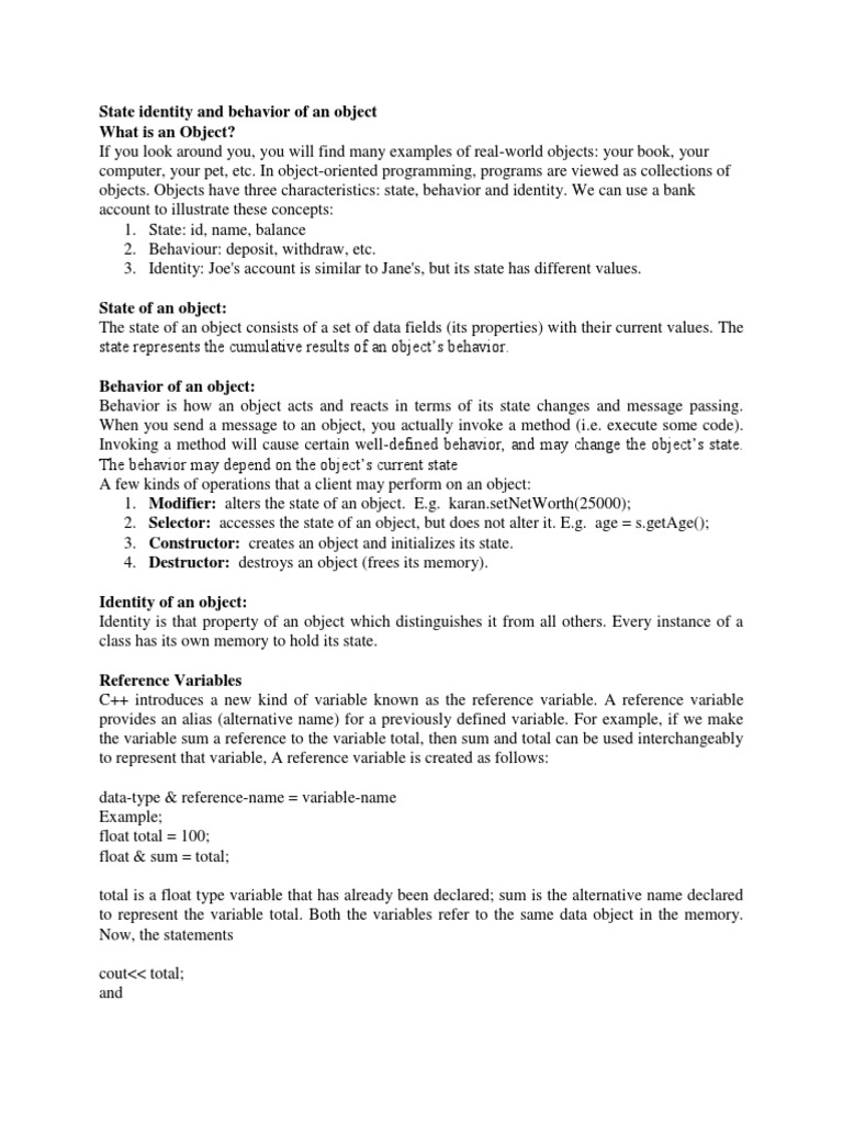 State identity and behavior of an object
