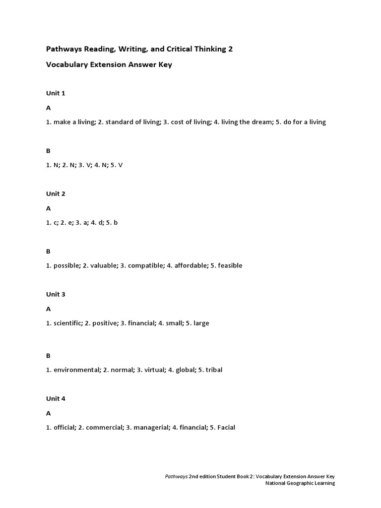 Pathways 2nd edition Student Book 2: Vocabulary Extension Answer Key