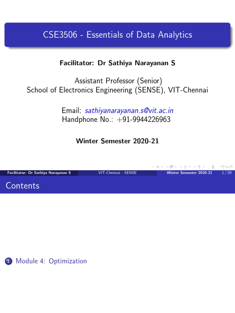 Facilitator: Dr Sathiya Narayanan S VIT-Chennai - SENSE Winter Semester 2020-21 2 / 20