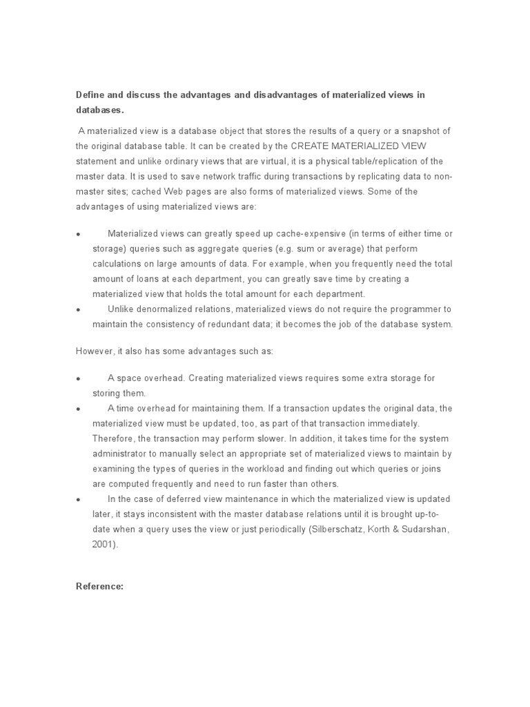 statement and unlike ordinary views that are virtual, it is a physical table/replication of the