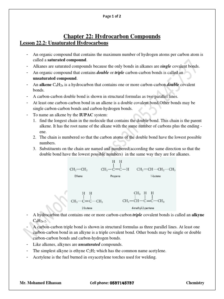 Mr. Mohamed Elhassan Cell phone: 0537145737 Chemistry