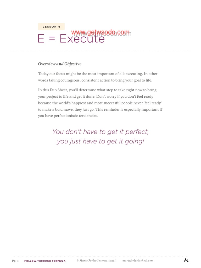 Pg. 1 F O L LOW-T H RO UGH FO RM ULA © M arie Forleo Int ern at ion al m arieforleobsc h o o l .c om