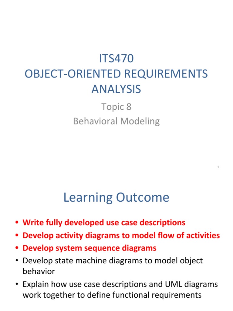 • Activity diagrams (first shown in Chapter 4 - slides) can also be used