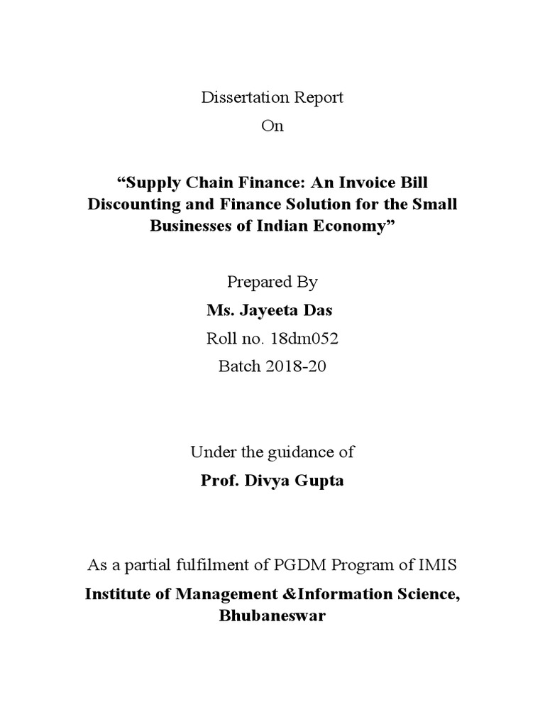 The title of the study is “Supply Chain Finance: An Invoice Bill