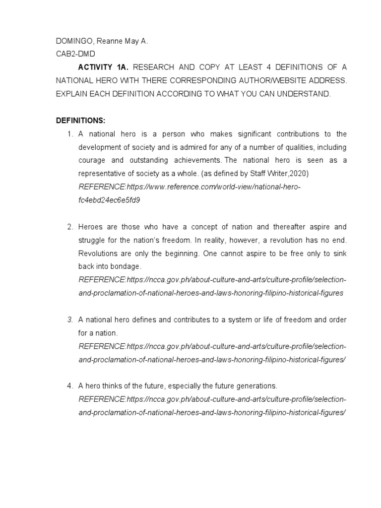 ACTIVITY 1A. RESEARCH AND COPY AT LEAST 4 DEFINITIONS OF A