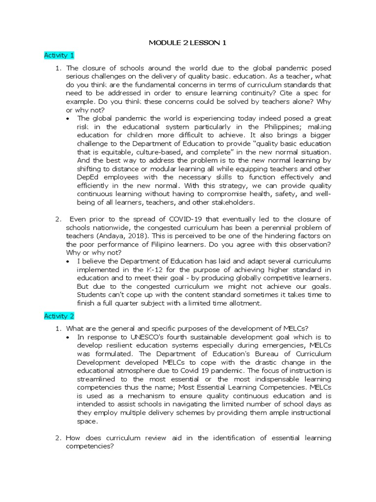 In your LAC Session, discuss and share your answers to Activities 1-3 in this lesson.