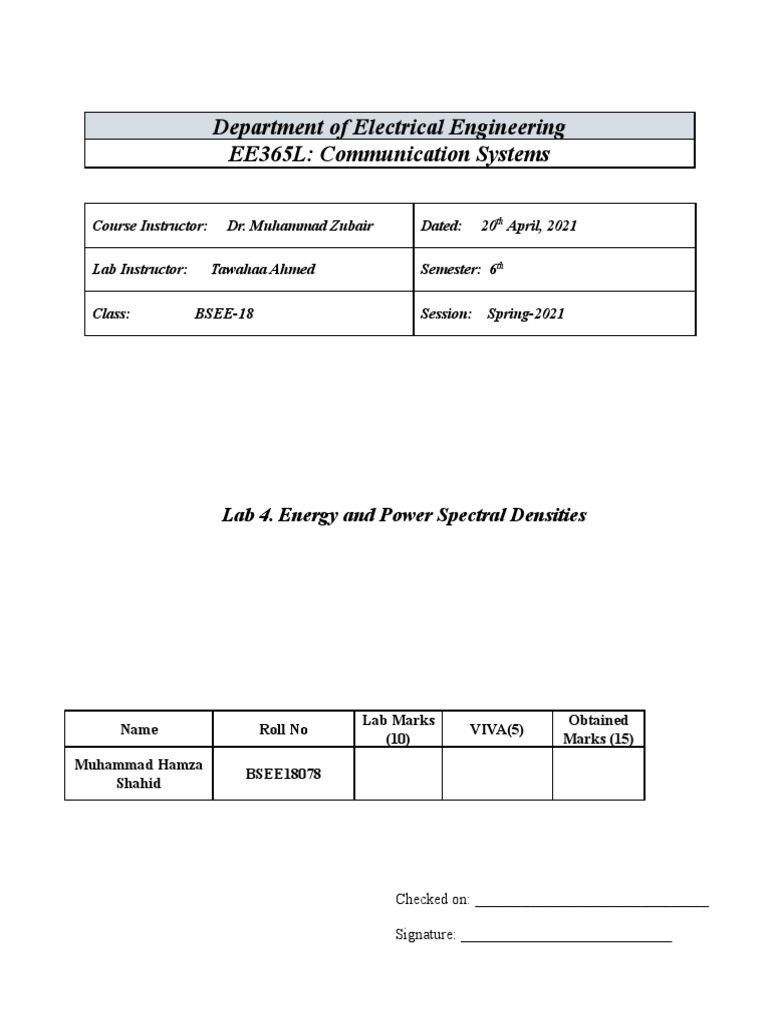 Course Instructor: Dr. Muhammad Zubair Dated: 20th April, 2021