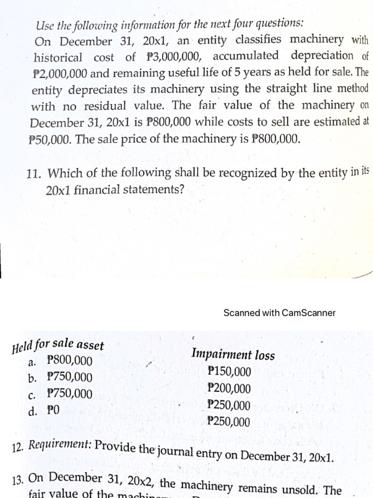 while costs to sell are estimated at P50,000. The entity did »,
