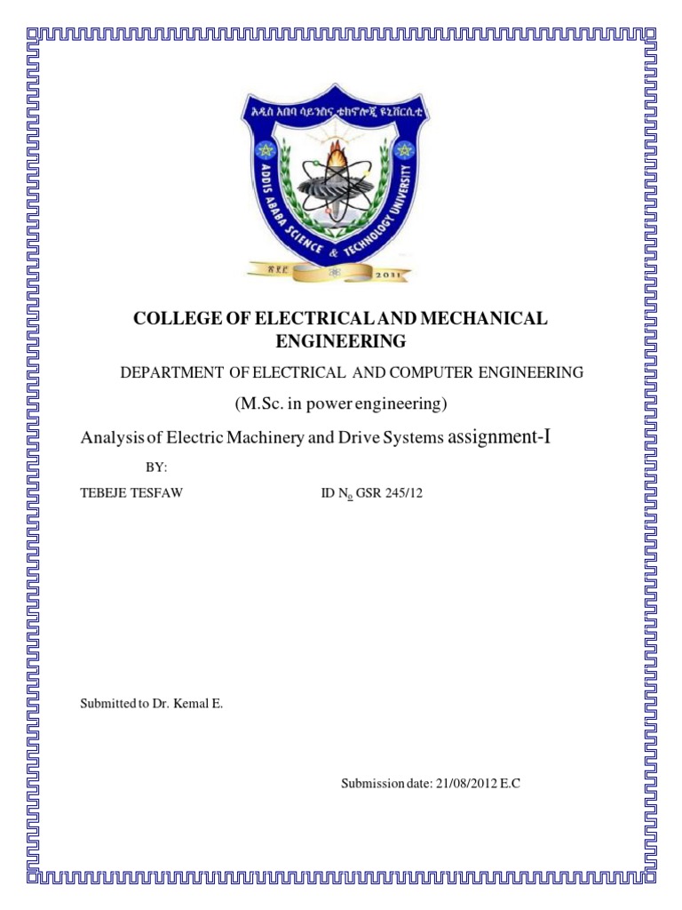 Analysis of Electric Machinery and Drive Systems assignment-I