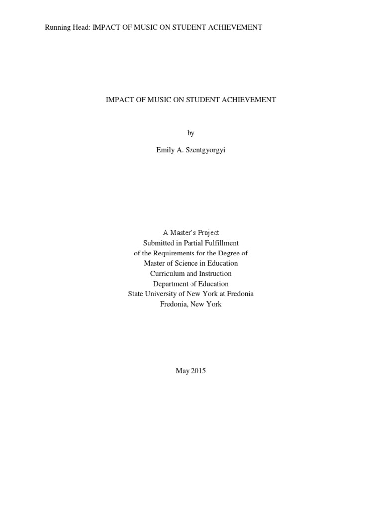 Running Head: IMPACT OF MUSIC ON STUDENT ACHIEVEMENT