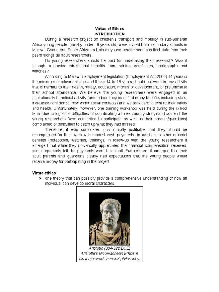 concerning virtue but Aristotle’s book entitled Nicomachean Ethics is the first