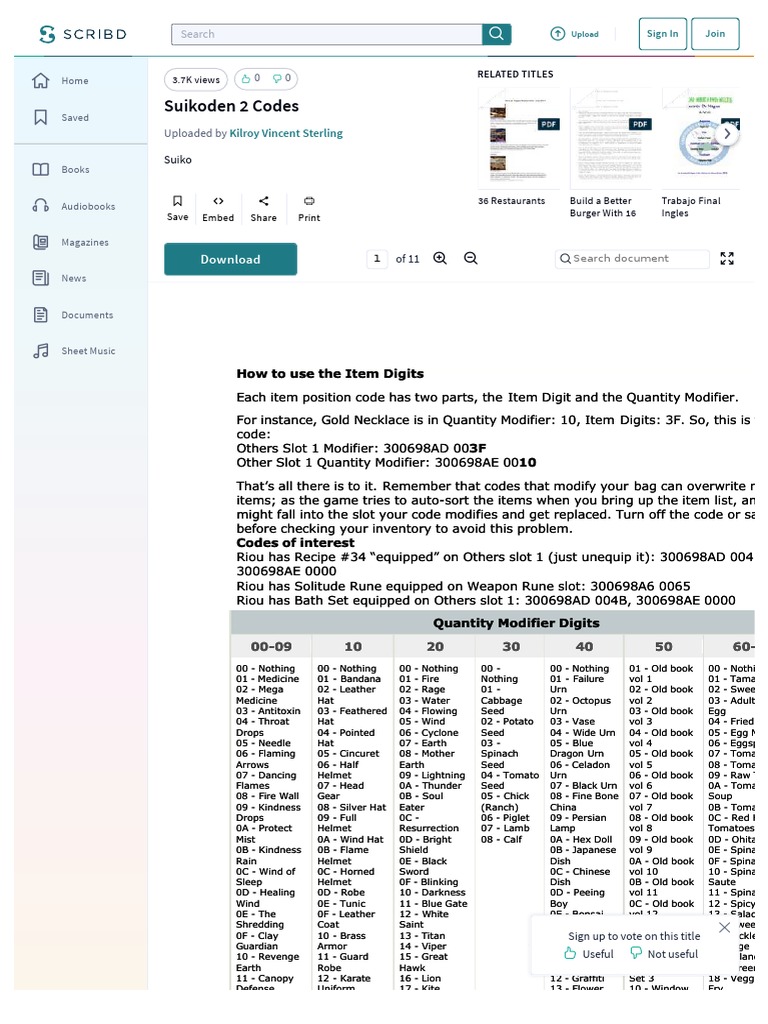 For instance, Gold Necklace is in Quantity Modifier: 10, Item Digits: 3F. So, this is the