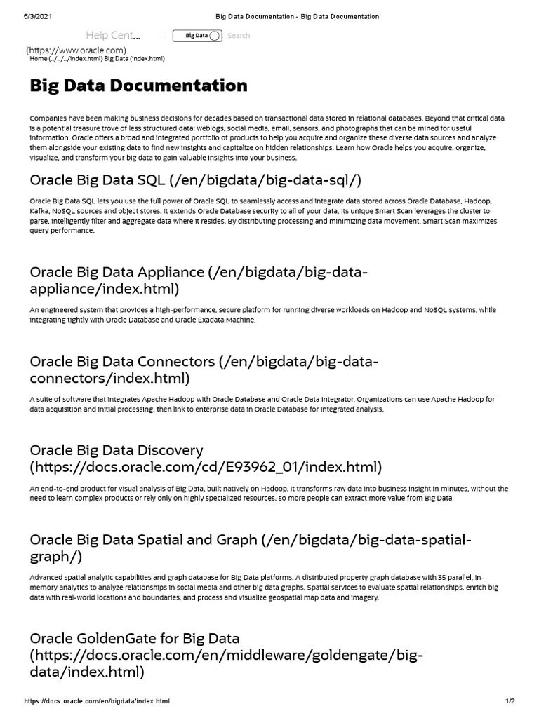 https://docs.oracle.com/en/bigdata/index.html 1/2