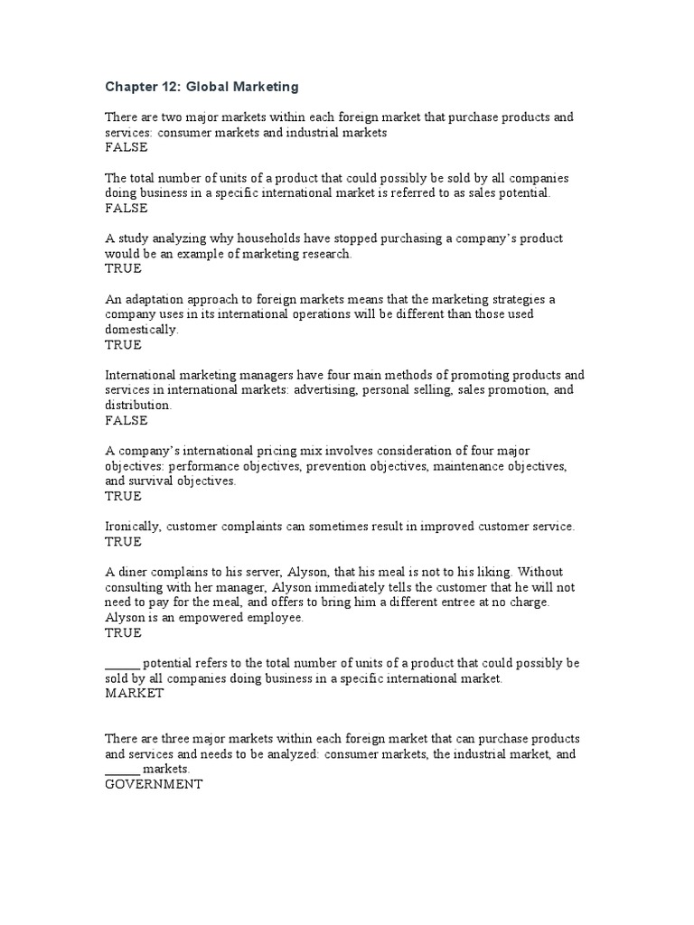 Chapter 12: Global Marketing