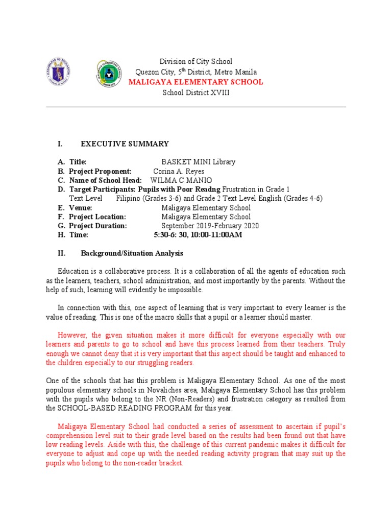 Basket Mini Library Principal MOOE comments, suggestions.