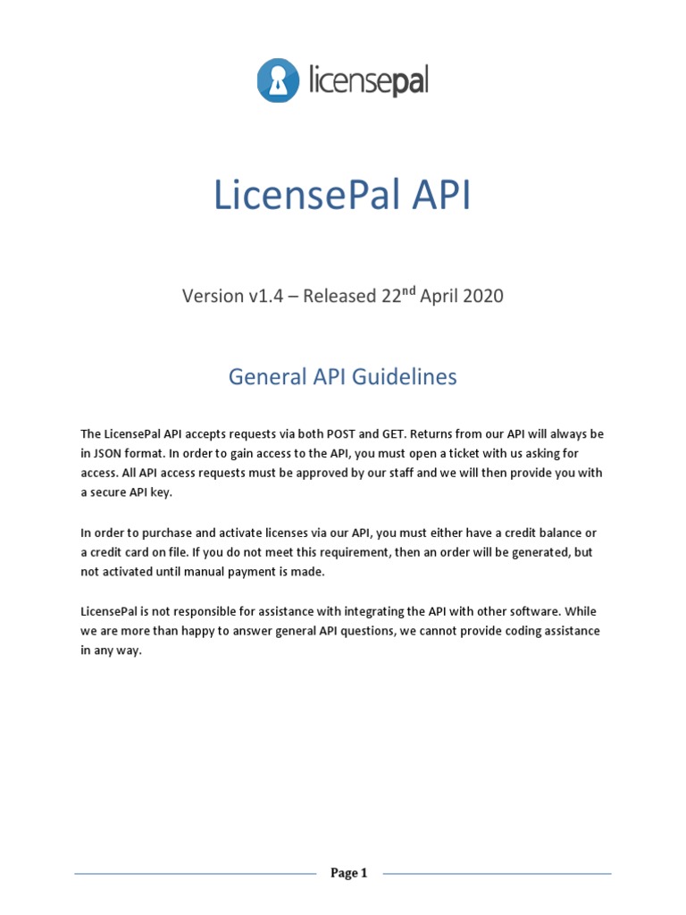 LicensePal is not responsible for assistance with integrating the API with other software. While