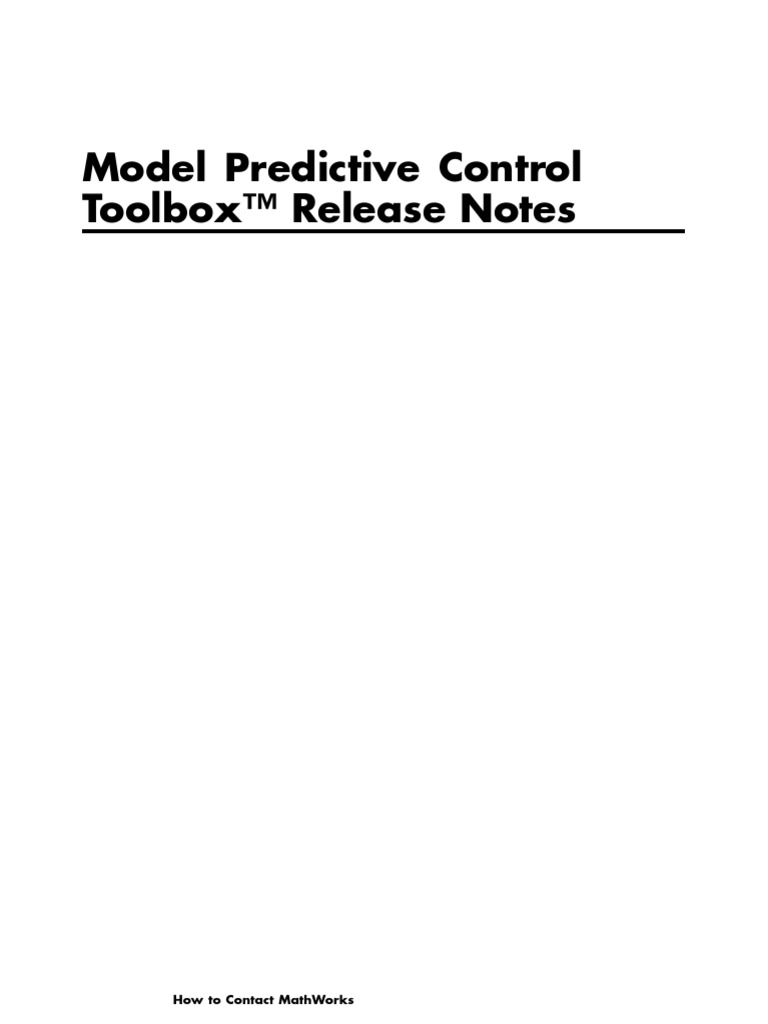 Version 2.0 (R14) Model Predictive Control Toolbox™ Software