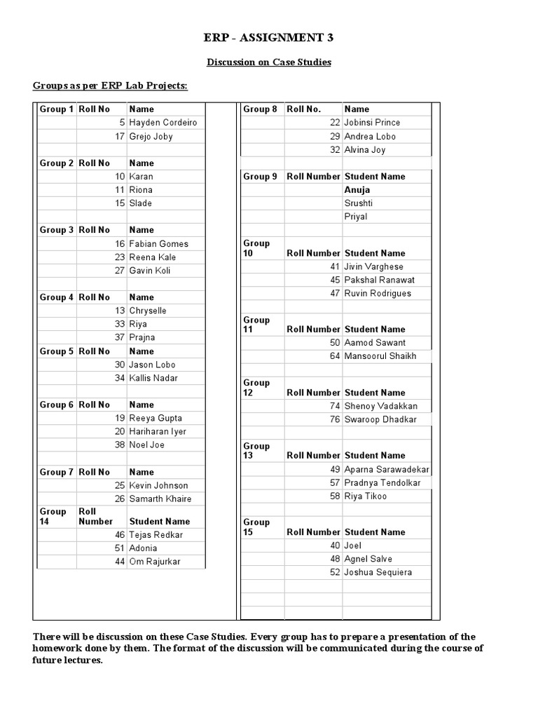 There will be discussion on these Case Studies. Every group has to prepare a presentation of the