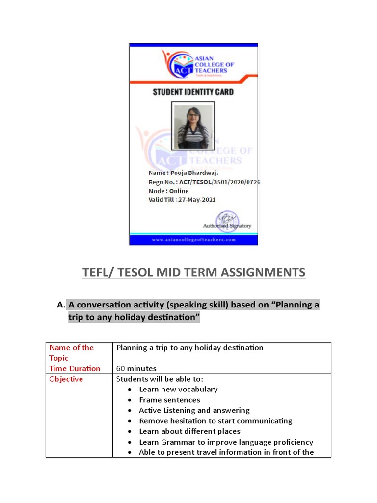 TEFL/ TESOL MID TERM ASSIGNMENTS