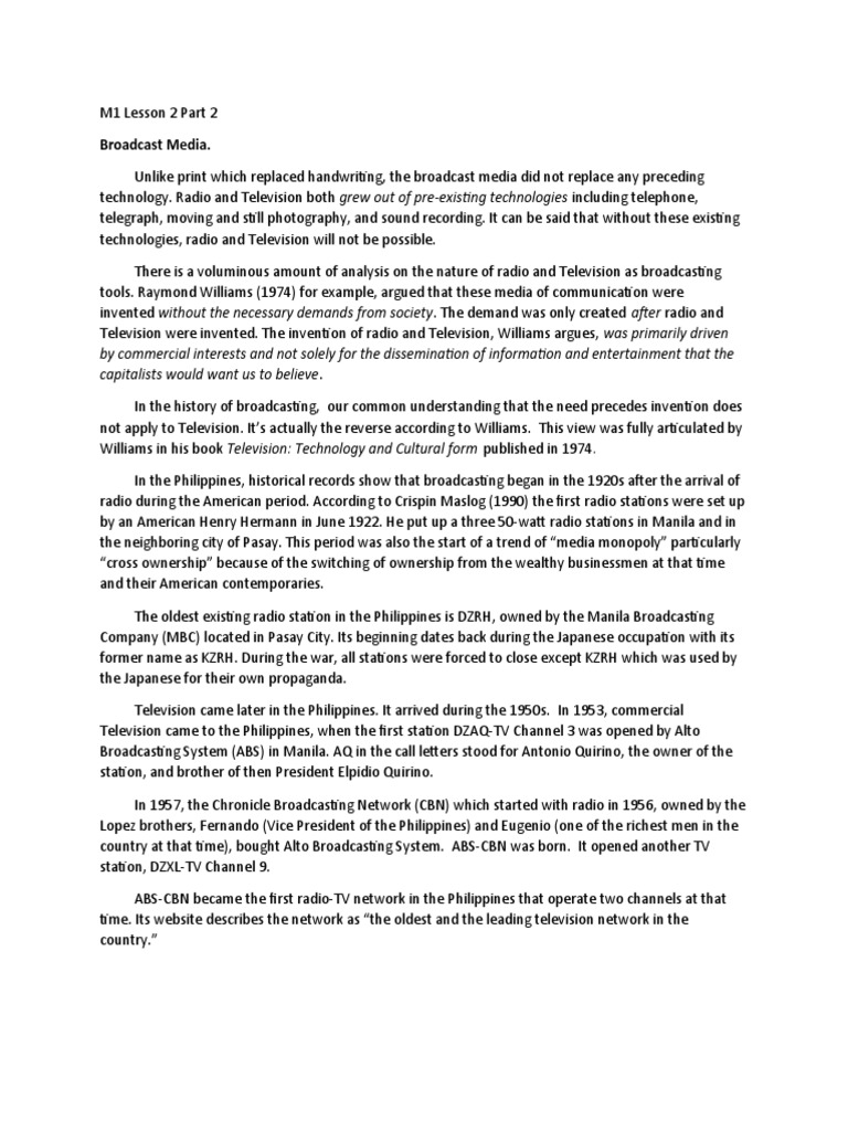 Television were invented. The invention of radio and Television, Williams argues, was primarily driven