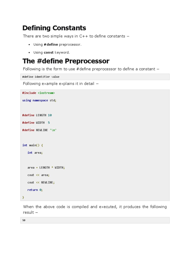 Following is the form to use #define preprocessor to define a constant −