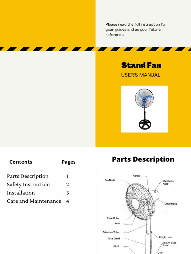 • Fasten the base knob at the bottom of the base plate to fix the • Do not use hard objects to clean the fan.