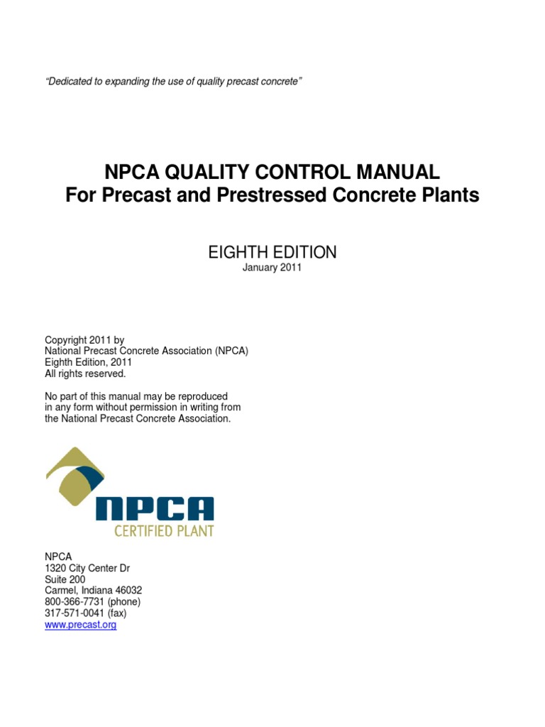Since its introduction in 1987 the NPCA Quality Control Manual for Precast and Prestressed
