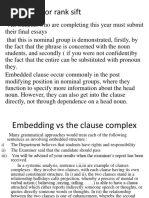 the alpha projecting clause (usually by that or WH-words), ad changes to the