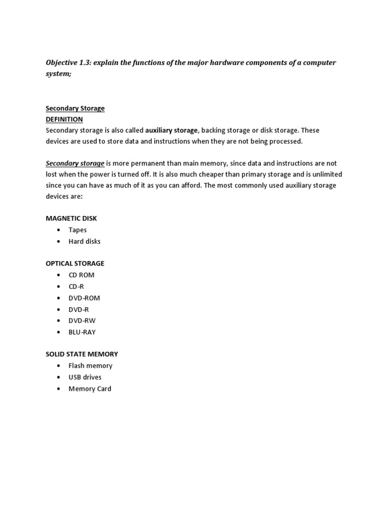 3: explain the functions of the major hardware components of a computer