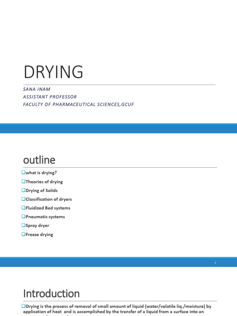 In pharmaceutical technology, drying is carried out for one or more of the following reasons: