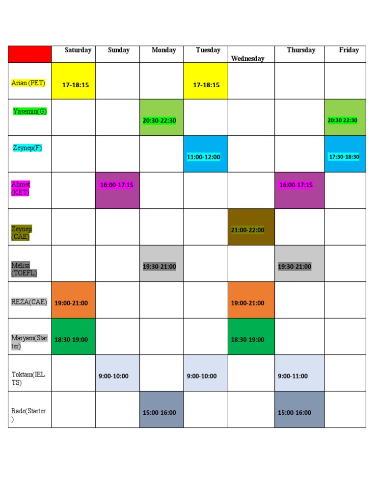 Toktam(IEL 9:00-10:00 9:00-10:00 9:00-11:00