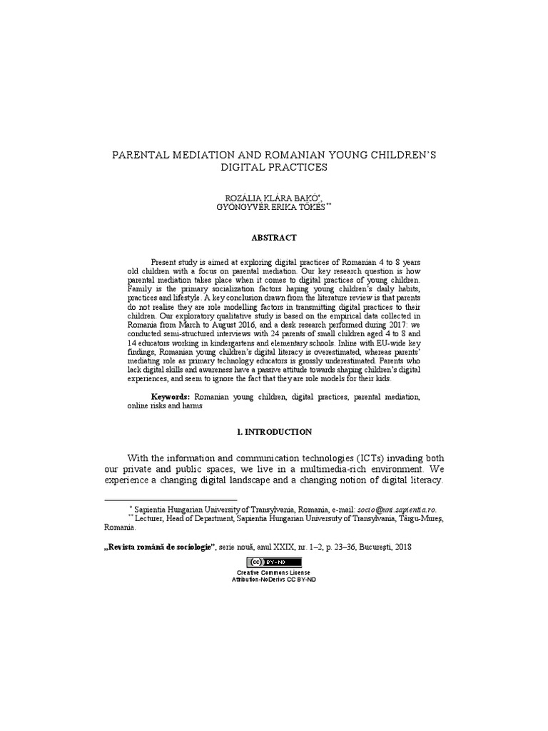 context in Romanian young children’s digital practices, with a focus on parental