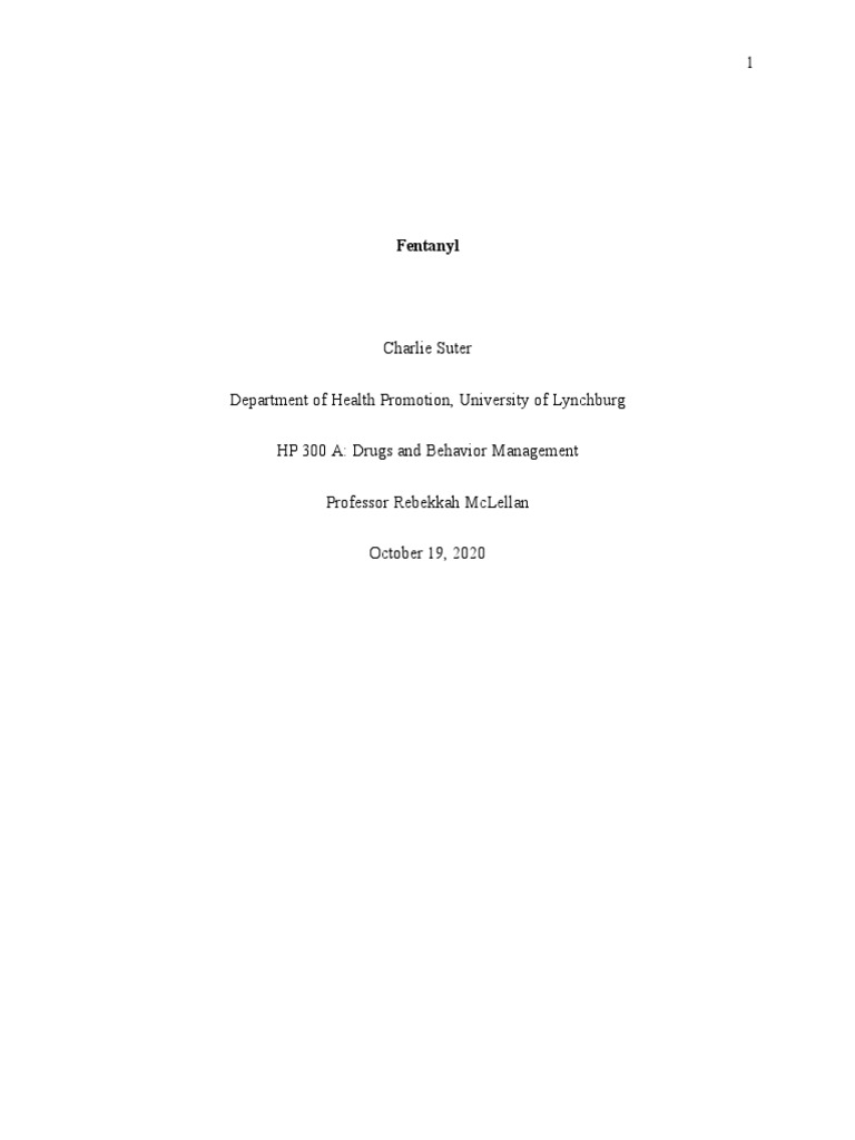 in public health. I intend to obtain a master’s in public health so the knowledge of fentanyl and