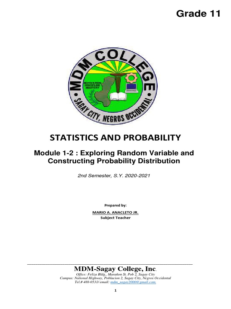 5. Construct the probability distribution for the random variables and Draw the corresponding Histogram for