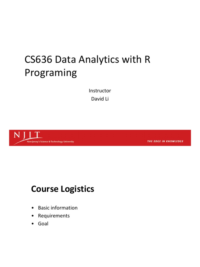 • Instructor: David Li, email: dli@njit.edu, tel: 631-800-3381
